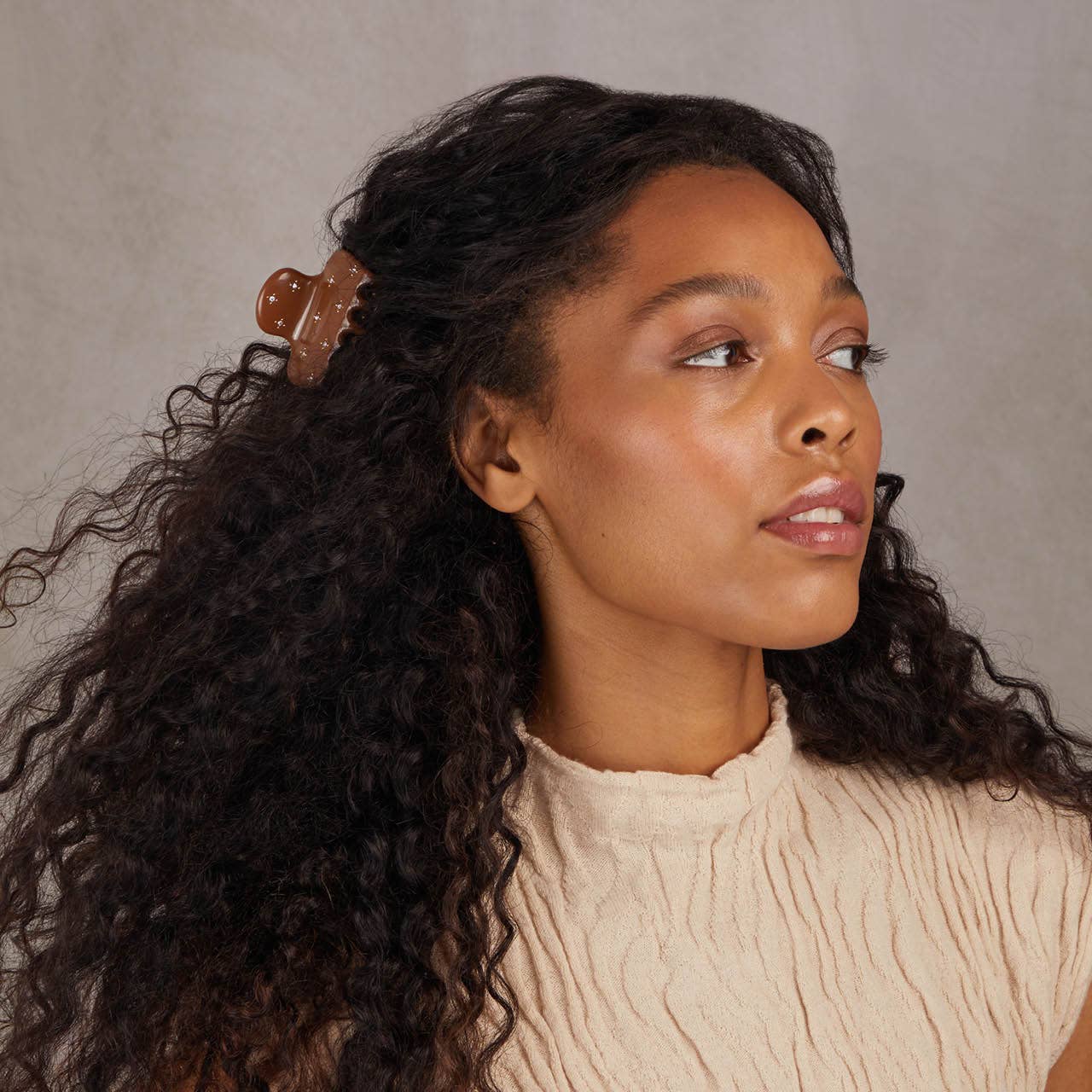 Recycled Plastic Rhinestone Medium Puffy Claw Clip-Camel