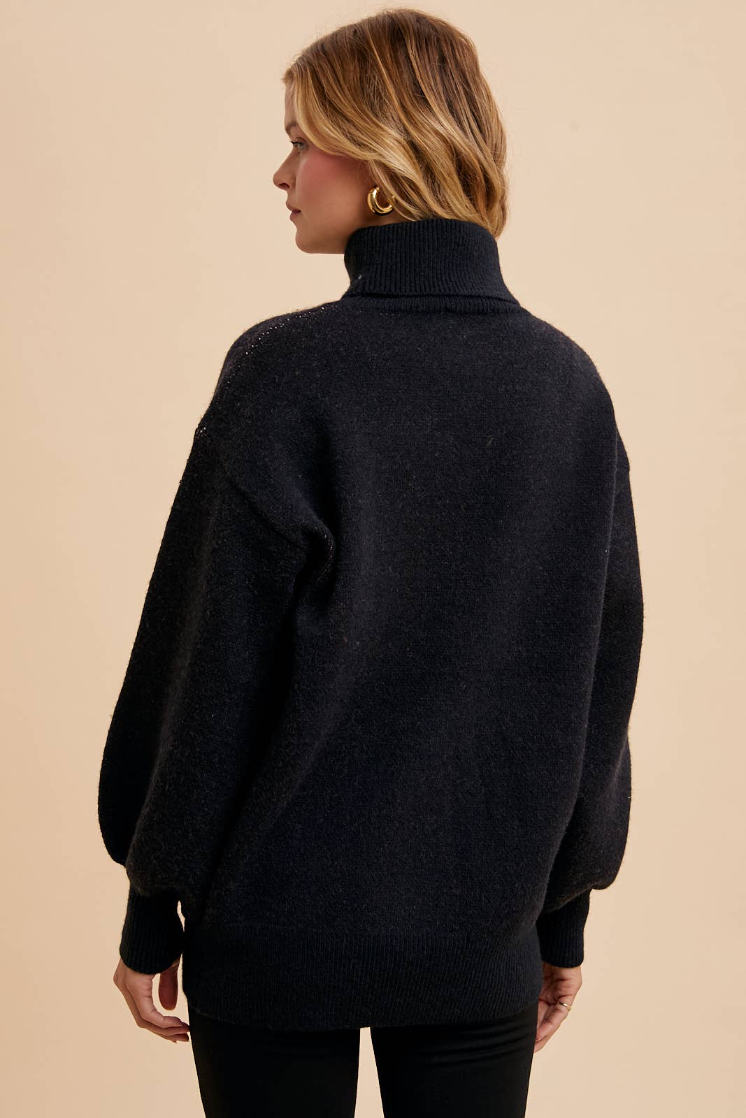 KNITTED TURTLENECK LOOSE FIT SWEATER WITH A FRONT LARGE ROSE JACQUARD MOTIF.